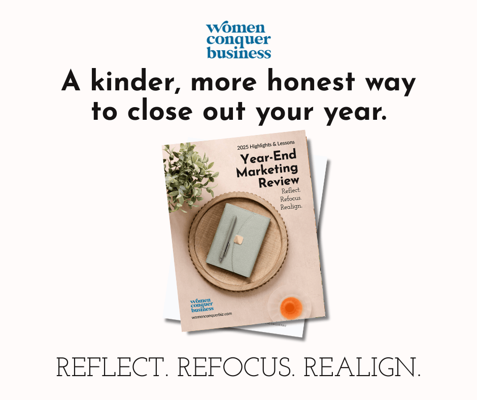 Get your free Year-End Marketing Review: a simple, realistic reflection guide for women 5–10 years into business who are exhausted from carrying everything alone. No shame. No spreadsheets. No “push harder” advice.
